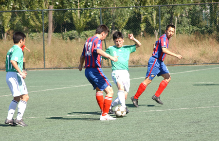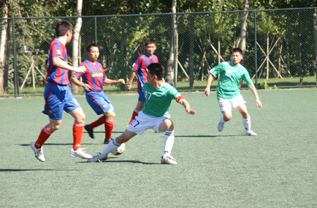 2010年9月26日,进行了第六届(2010)“波司登”杯中国网络媒体足球精英赛小组赛的首轮比赛。图为千橡互动2比0战胜北京广播网