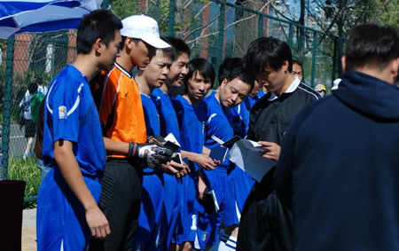 2010年9月26日,进行了第六届(2010)“波司登”杯中国网络媒体足球精英赛小组赛的首轮比赛。图为赛场花絮。