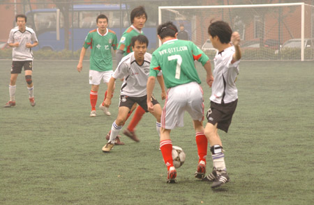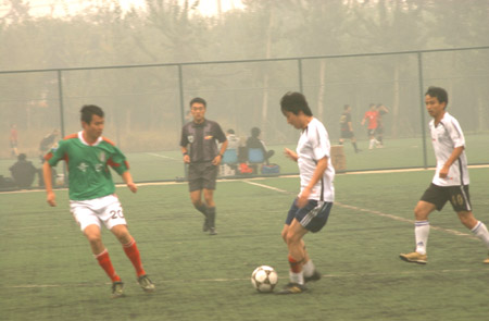 2010年10月10日,进行了第六届(2010)“波司登”杯中国网络媒体足球精英赛第二轮小组赛。图为奇艺网2比2战平百度。