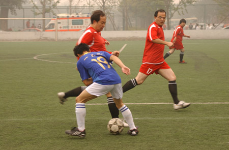 2010年10月10日,进行了第六届(2010)“波司登”杯中国网络媒体足球精英赛第二轮小组赛。图为一三九移动互联8比2战胜市网管办。