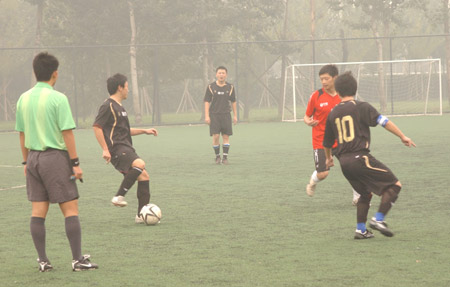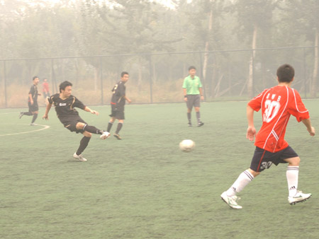 2010年10月10日,进行了第六届(2010)“波司登”杯中国网络媒体足球精英赛第二轮小组赛。图为空中网9比0战胜中搜。