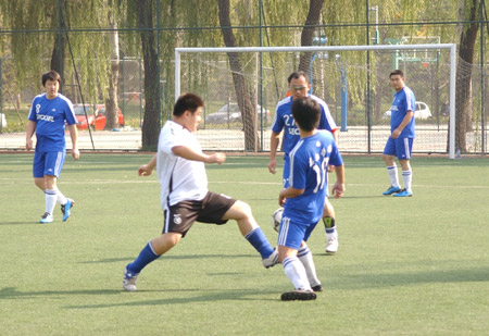 2010年10月16日,进行了第六届(2010)“波司登”杯中国网络媒体足球精英赛第三轮小组赛。图为盛拓传媒3比1战胜世纪互联。