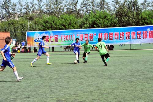 2011年9月17日,进行了第七届(2011)“波司登”杯中国网络媒体足球精英赛小组赛的首轮比赛。图为盛拓传媒2比0战胜奇艺网