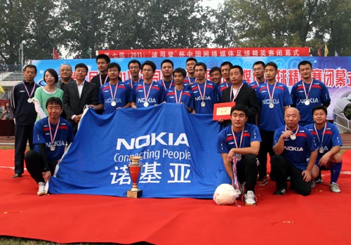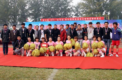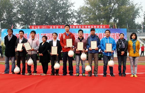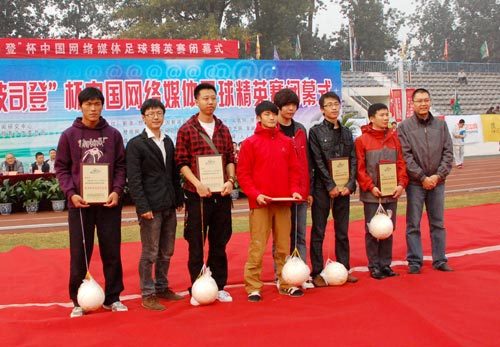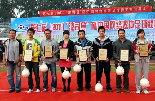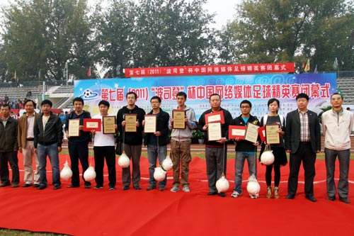 10月22日上午,第七届(2011)“波司登”杯中国网络媒体足球精英赛在北京体育大学圆满落下帷幕。国家互联网信息办公室互联网新闻研究中心、中国互联网协会互联网新闻信息服务工作委员会、北京市互联网信息办公室、北京网络媒体协会、北京市足球运动协会、北京体育大学以及各参赛单位领导出席闭幕式并为获奖球队颁奖。