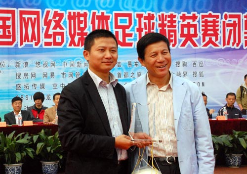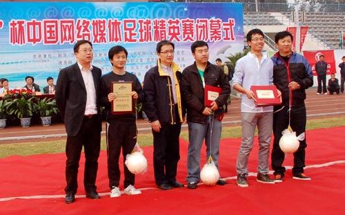 北京市互联网信息办公室常务副主任、北京网络媒体协会会长佟力强在闭幕式致辞中讲到,整个赛事全程紧张热烈、和谐有序,各参赛网站将“友谊、拼搏、团结、奋进”的精神贯彻比赛始终,希望北京网络媒体同仁能够以此为契机,以此为动力,将“积极进取,兢兢业业,努力拼搏”的体育精神发扬到实际工作中,发扬到“争创文明网站”活动中,为推动文明办网、文明上网做出应有的贡献。中央外宣办网络新闻宣传局副局长、互联网新闻研究中心主任刘正荣高度评价了以网络媒体足球精英赛为平台,将网络文化与体育运动相结合,互促互荣、齐头并进的方式,对本次比赛的成功举办给予了充分肯定,并衷心希望以后的赛事能够扩大规模,吸引更多的网站参与,将比赛办得越来越好。赛事支持单位波司登公司代表徐诚在致辞中也表示,赛事各方“以球会友,增进了解,加深友谊”,充分展示了网络媒体精英们的真实风采,展现出业界充满活力,朝气蓬勃的精神风貌。