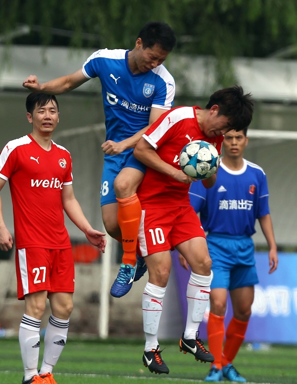 8月19日、20日,2017中国网络媒体足球精英赛在北京体育大学继续进行。在甲组第二轮小组赛中,A组360集团7:0中国新闻网、百度1:4凤凰网;B组滴滴出行1:1微博、腾讯网3:0阿里巴巴;C组搜狗2:0苏宁文创、人民网0:8小米科技;D组今日头条2:1搜狐、北京蓝汛2:3汽车之家。