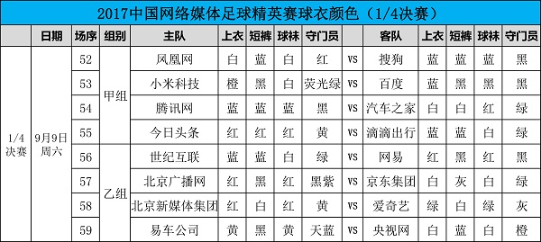 2017中国网络媒体足球精英赛四分之一决赛球衣颜色