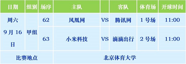 由于场地原因,2017中国网络媒体足球精英赛工作委员会对9月16日(周六)甲组1/2决赛的比赛时间进行调整,详细赛程如下: